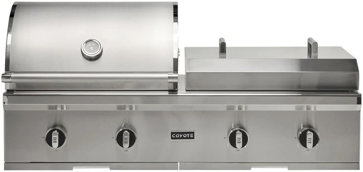 The Coyote 50 inch Combo built-in Natural Gas grill delivers a dual-zone cooking experience, With both a gas grill with Infinity burners and a flat top with U-Burners. This combination allows for traditional grilling along with high-heat searing, The flat-top cooking for ultimate versatility.Read More